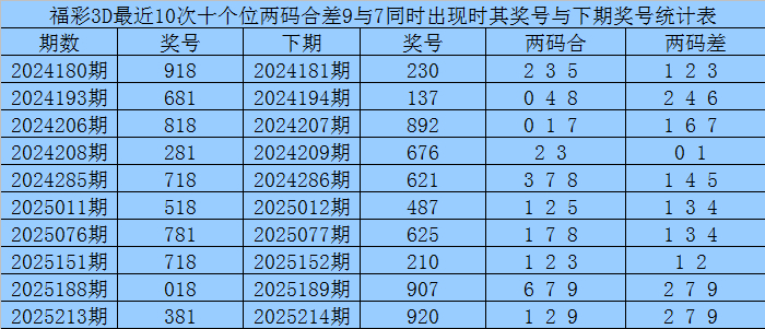 从以上统计不错看出,十个位两码合差9与7同期出现之后其下期两码合差阐扬最热的4个分手为:1237,本期十个位两码合差不错参考这四码中的数据。